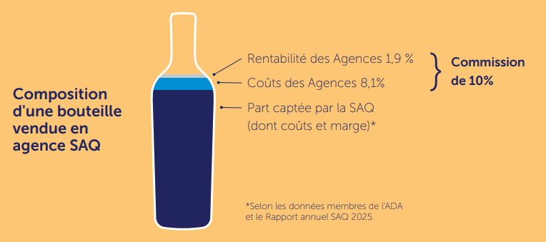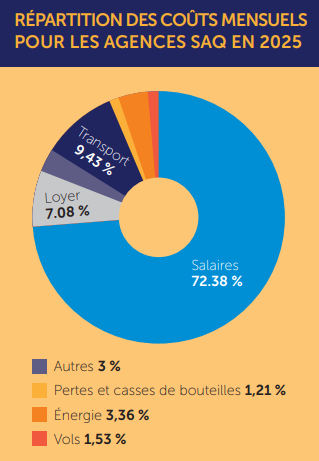 loyers, assurances, logistique). À chaque dollar de vente SAQ, le détaillant ne conserve que 0,02 $